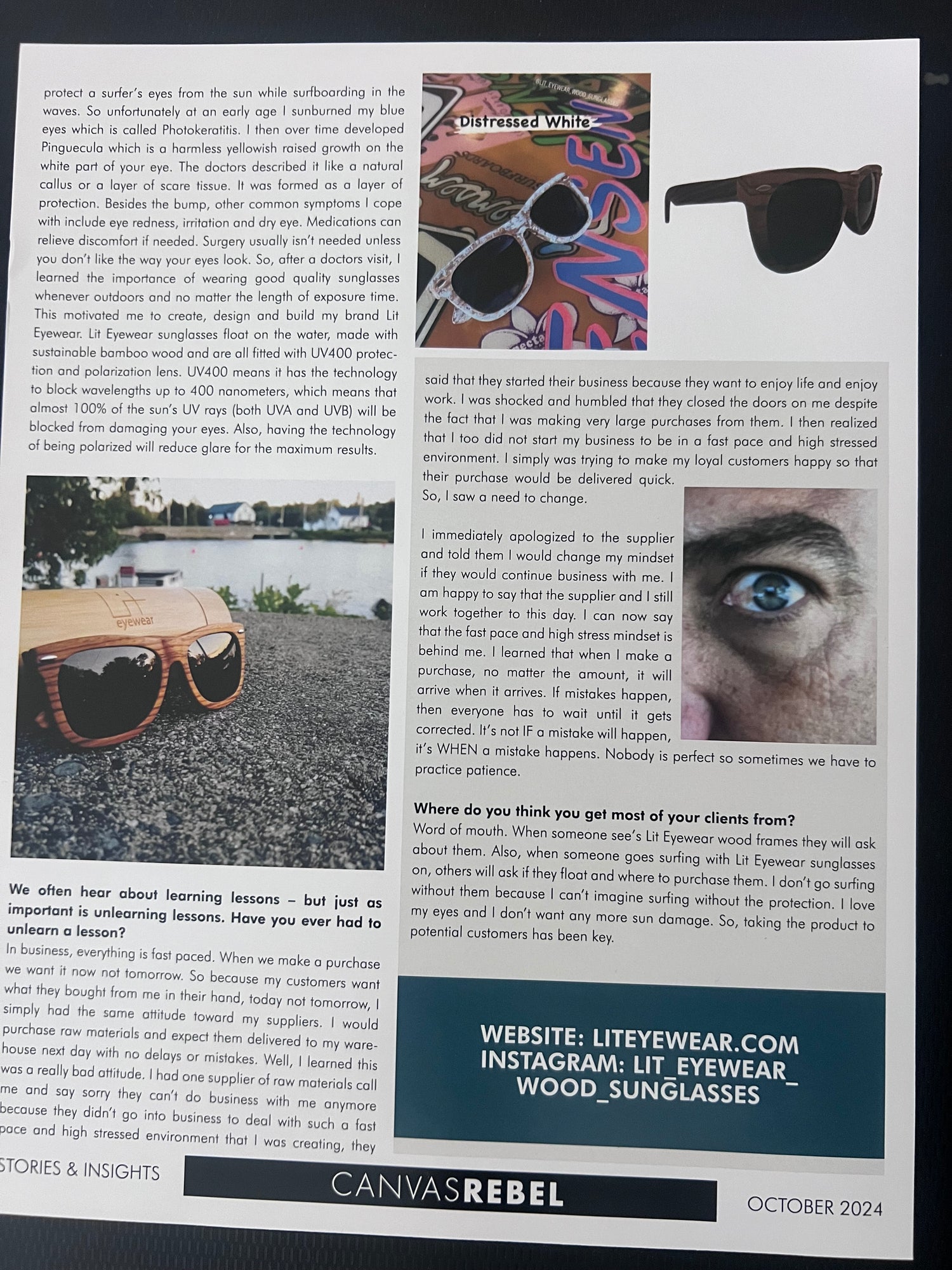 Plastic is not biodegradable and increases the problem of microplastics. Metal frames can get hot in the heat and cold in the freezing temperatures. Lit Eyewear is amazing eco-friendly gift, that is sustainable, lightweight and comfortable. Affordable alternative to plastic or metal frames. Renewable and Biodegradable. Reduces carbon footprint. Natural wood grain means that no two pairs are alike. Creating a one-of-a kind look, like a fingerprint or snowflake.